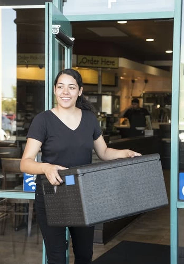 Progettati con un materiale in schiuma di polipropilene espanso ecologico e ad alte prestazioni, ideale per gli operatori di servizi di ristorazione, i GoBox offrono una conservazione della temperatura sicura per gli alimenti durante la raccolta del pranzo e il servizio da asporto.