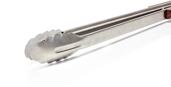 Le pinze per barbecue e carbone in acciaio inossidabile spazzolato con manico in legno fine sono un utensile indispensabile per grigliare e cucinare all’aperto.