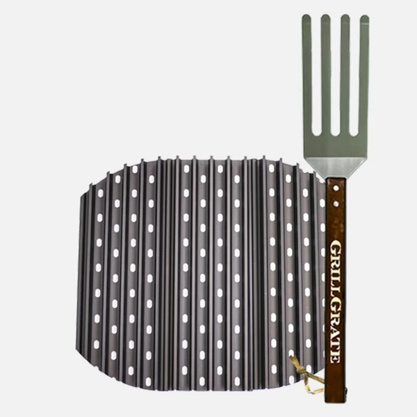 Ogni set viene fornito con un GrateTool che è in parte una forchetta e in parte una spatola che si inserisce tra i binari per entrare sotto il cibo e sollevarlo senza raschiare.