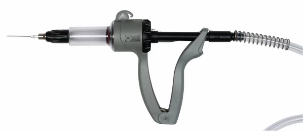 Il tubo di generose dimensioni di cui è dotata consente, inserendolo nel recipiente del liquido, di non interrompere mai l’attività di iniezioni dei liquidi. Il tubo è dotato di 2 molle per evitare piegamenti e schiacciamenti con conseguenti fastidiose perdite di efficienza. Il tubo è lungo 150 cm.