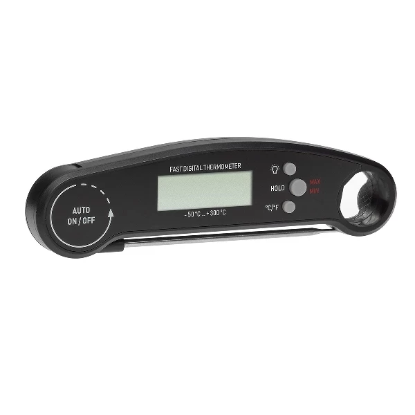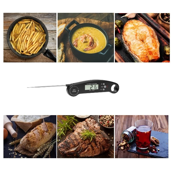 Termometro digitale tascabile e pieghevole con sonda (110 mm), ideale per il monitoraggio della temperatura di cibi e bevande con una misurazione veloce e precisa.